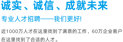 優(yōu)質(zhì)的服務(wù)源于對(duì)產(chǎn)品的執(zhí)著,英才網(wǎng)聯(lián)一直走在專(zhuān)業(yè)人才招聘的服務(wù)前沿,以傳統(tǒng)網(wǎng)絡(luò)招聘與移動(dòng)互聯(lián)相結(jié)合的方式重新定義“互聯(lián)網(wǎng)+招聘”的模式,以大數(shù)據(jù)信息化處理人與崗位的匹配關(guān)系。我們相信,真正的服務(wù)最終是人的服務(wù),服務(wù)在人,成事在心!英才網(wǎng)聯(lián)愿與您攜手同心,共創(chuàng)輝煌。